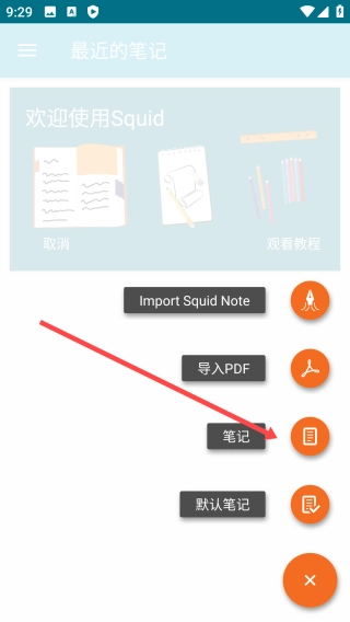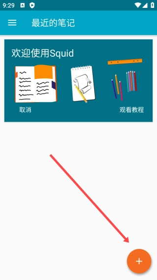 如何给Squid添加笔记呢? 1. 首先打开Squid应用,然后点击界面上的【+】按钮。
