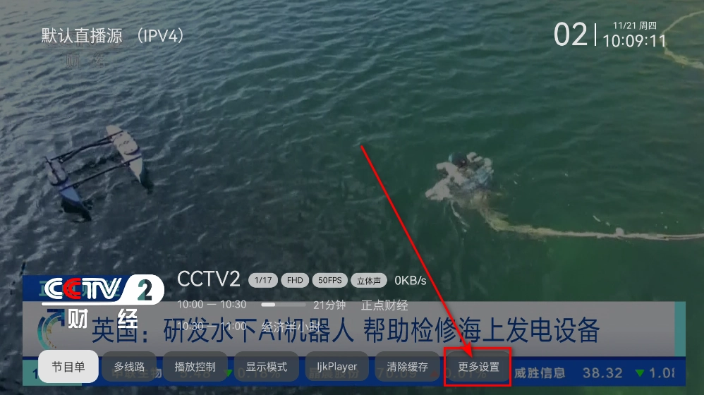 1.首先,若要通过电视遥控器双击OK键来实现双击屏幕的操作,需找到软件的退出提示,然后在其中找到更多设置选项。