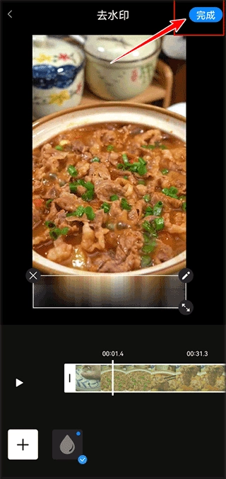 4、确定好水印覆盖范围后,点击【完成】按钮,系统便会自动导出视频。