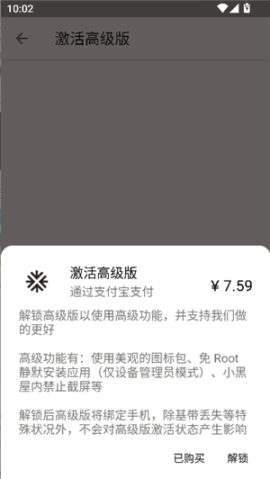 3、这里用户使用支付宝付款以后,就能解锁高级版了