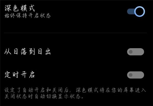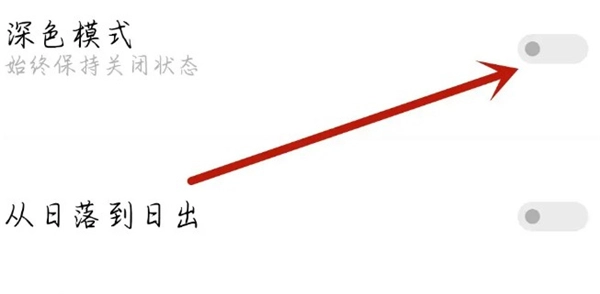 4、然后点击打开深色模式后面的开关。