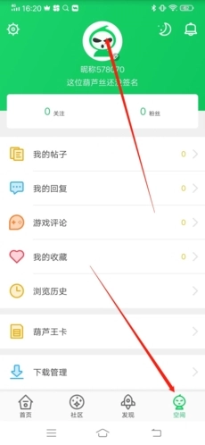 1、进入后,先点击右下方的“空间”,接着再点击上方的“头像”;