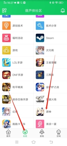 1、进入后,先点击下方的“社区”选项,接着选择并进入你想要发帖的版块。
