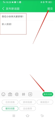 3、把帖子的标题和内容都编辑好后,再点击右下方选择帖子类型,所有步骤都完成后,最后点击右上方的“提交”按钮,经过一段时间的审核,审核通过后就成功发布帖子了。