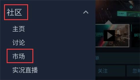 steam如何把库存物品交易给好友呢? 第一步:先点击左侧边栏,进入“社区”板块里的“市场”。