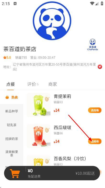 3、挑选饮品,例如点击西瓜啵啵旁边的选规格按钮,进入选择界面。