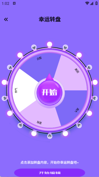 3、进入幸运大转盘页面后,点击添加转盘内容,接着就可以体验幸运转盘了。