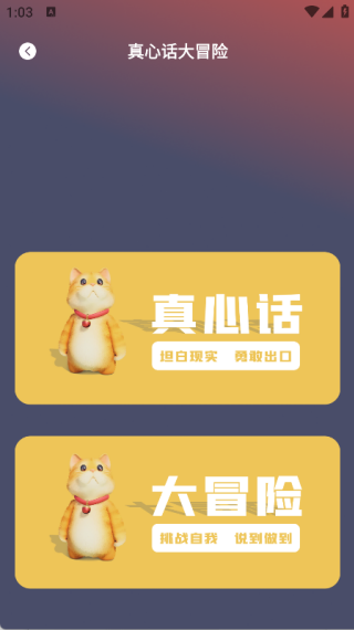 进入真心话大冒险页面后,你可以选择真心话体验,也可以选择大冒险来参与。