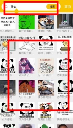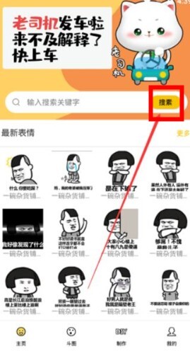 在首页的搜索框中输入文字,系统会匹配出相关的表情包资源。