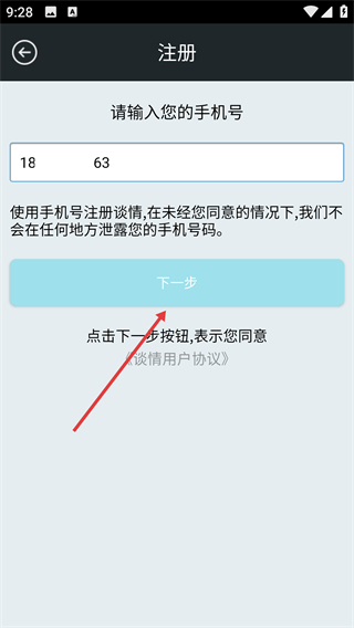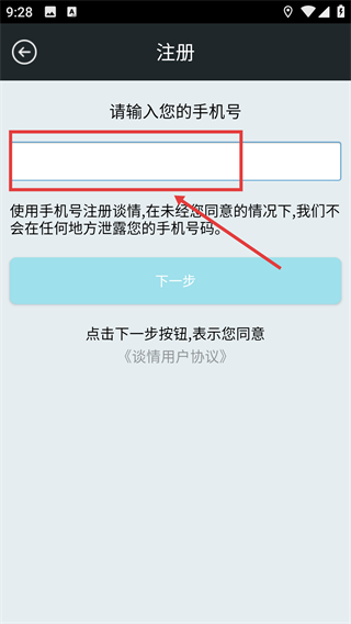 2、在注册页面输入手机号。