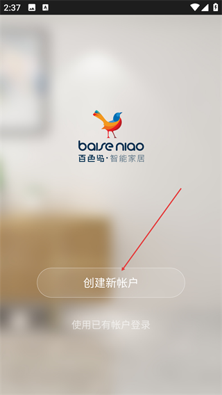 1、在百色鸟·智能家居的初始界面,点击【创建新帐户】按钮,即可进入账号注册流程。