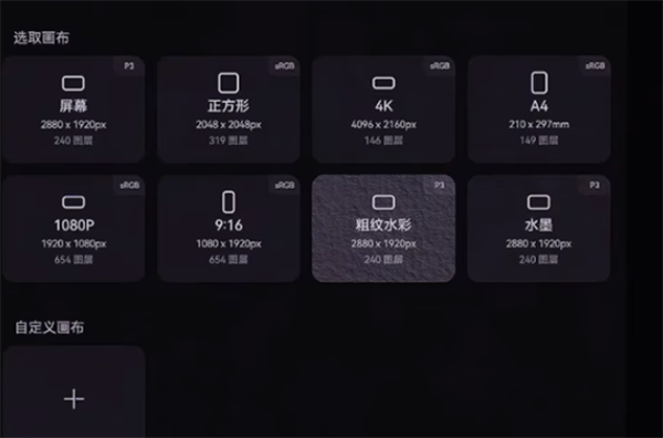 2、新建作品,选择合适的画布。
