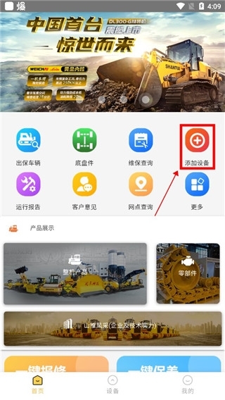1、进入山推e路行,在首页中点击添加设备;