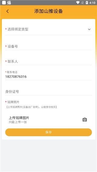 3、接着挑选要绑定的设备类型,填写对应的信息后,点击保存按钮就完成了。
