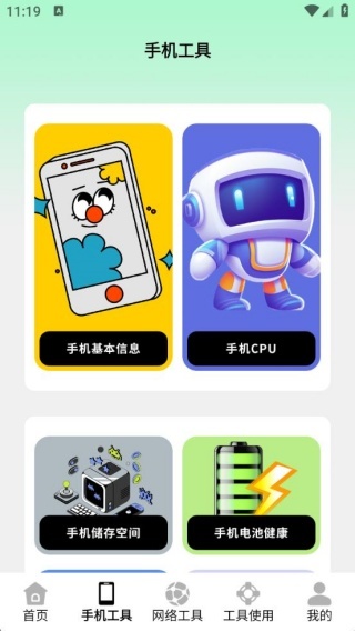 2、查看手机的基础信息,知晓手机的配置情况,监测手机CPU的运行状态,查看手机存储空间的剩余容量。