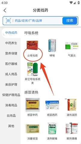 2、然后看看自己要买什么药,选择对应的类别进入。