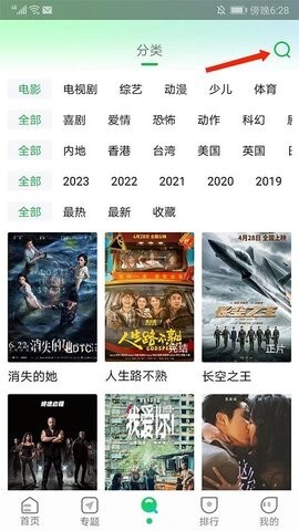 2. 来到找片界面,点击右上角的【放大镜】图标,就能开启搜索。