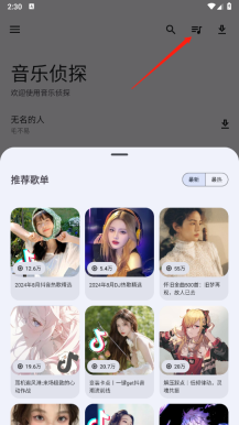 3、点击右上角的位置,会出现种类繁多的音乐资源类型。