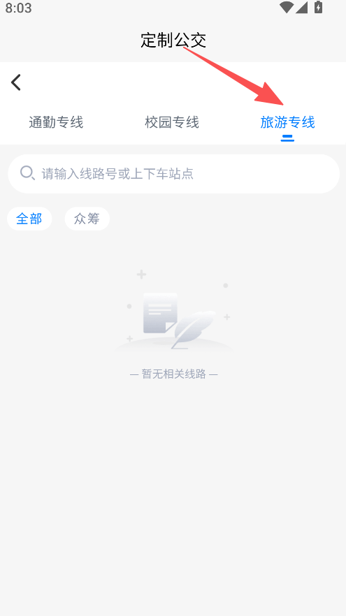 2、在定制公交页,选择旅游专线分类。