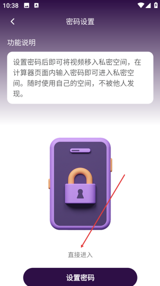 2、在密码页,点击【直接进入】按钮,即可进入秘密视频的管理页面。