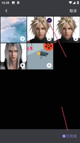 4、进入选择页面后,先选中【目标视频】,再点击【完成】按钮,这样就能把视频添加到秘密视频空间里了。