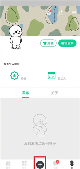1、滴墨社区页面,点击选择下方添加图标。