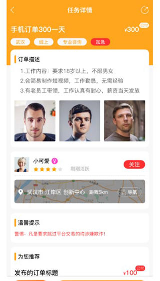 高薪职位与实时订单智能推送,服务信息全网展示,招聘企业信息透明化,与企业主直接沟通,帮助您快速入职高薪岗位。