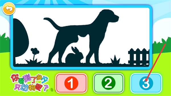 4、当被问到“你看到了多少只动物”时,通过观察剪影能够辨认出狗、猫、兔子这三种动物,此时选择数字“3”就可以完成这道题的作答。