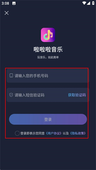 3、进入登录页面后,填写相关信息并勾选协议,随后点击登录按钮,就能完成账号登录操作。