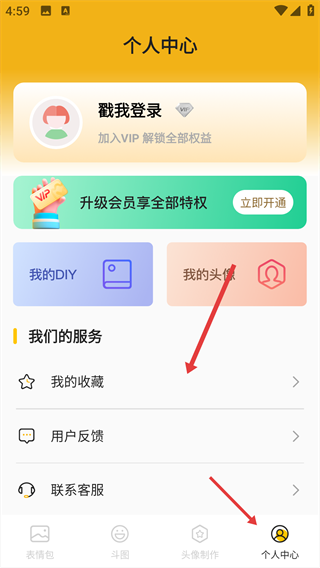 3、进入我的页面后,找到“我们的服务”分类,点击其中的【我的收藏】选项。