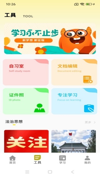 3、进入工具专区,这里提供多种自学模式,是一个专注学习的平台。