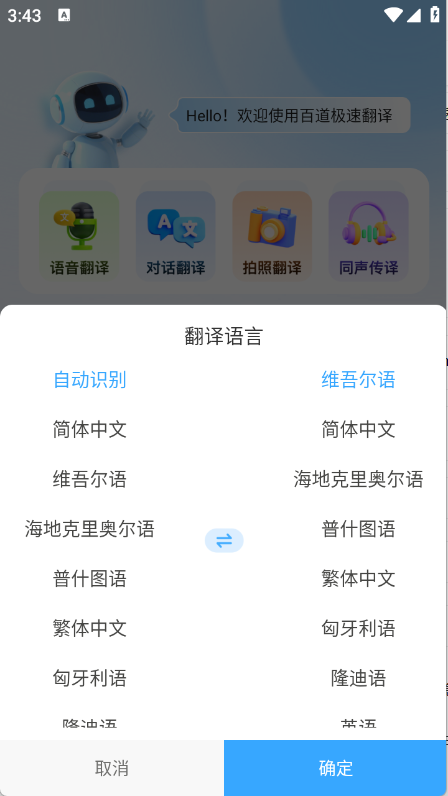 百道极速翻译是一款支持多语种翻译的软件,像日语、韩语、西班牙语等都能轻松应对,还具备拍照翻译、文本翻译和语音实时翻译等实用功能,并且所有功能完全免费,让用户尽享便捷高效的翻译服务。