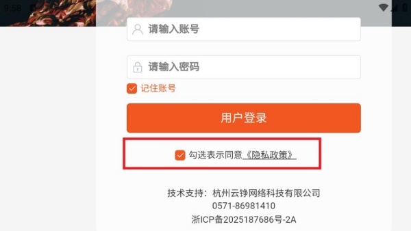 4、登录时,请记得勾选下方的“我已同意隐私政策”选项。