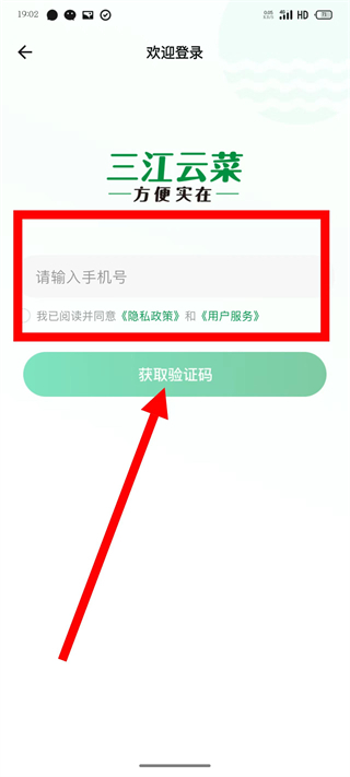 3、在登录页面输入手机号码,勾选相关协议后,点击“获取验证码”按钮。