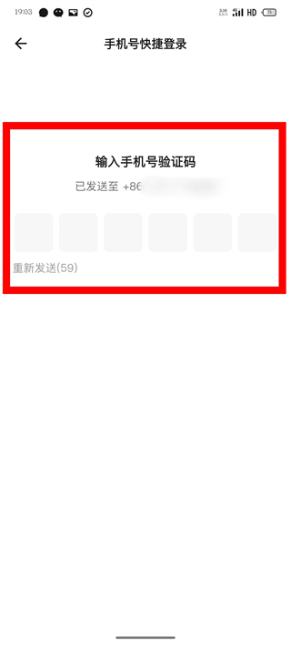4、在手机号快捷登录页面,输入收到的验证码后系统会自动登录,以此完成注册流程。