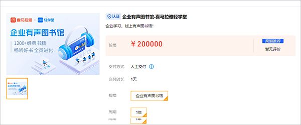 2、企业有声图书馆——喜马拉雅轻学堂:200000元/年