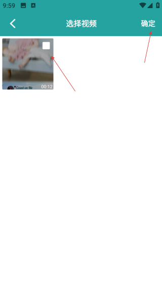 3、在视频选择页面勾选想要编辑的目标视频后,点击右上角的“确定”按钮,即可进入视频编辑环节。
