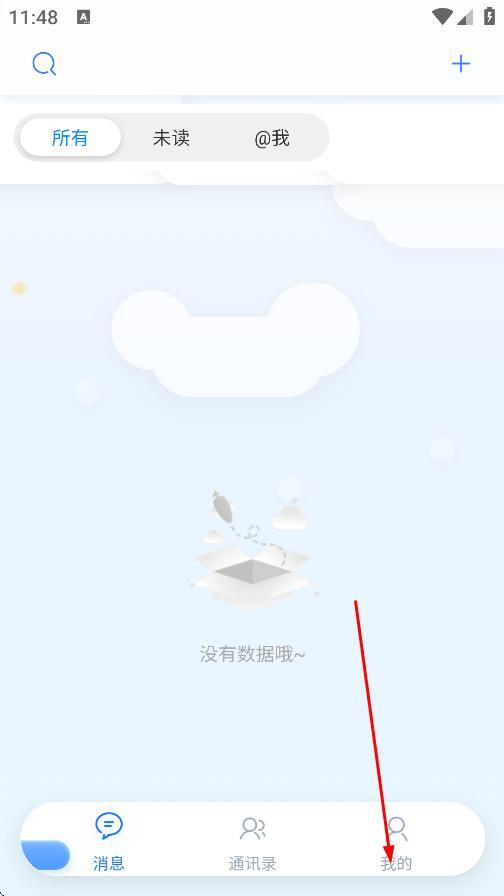 1、在消息页面,点击底部我的,进入个人页面。