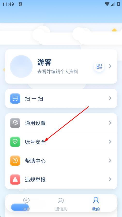 2、在个人页面,点击账号安全,进入账号安全页面。