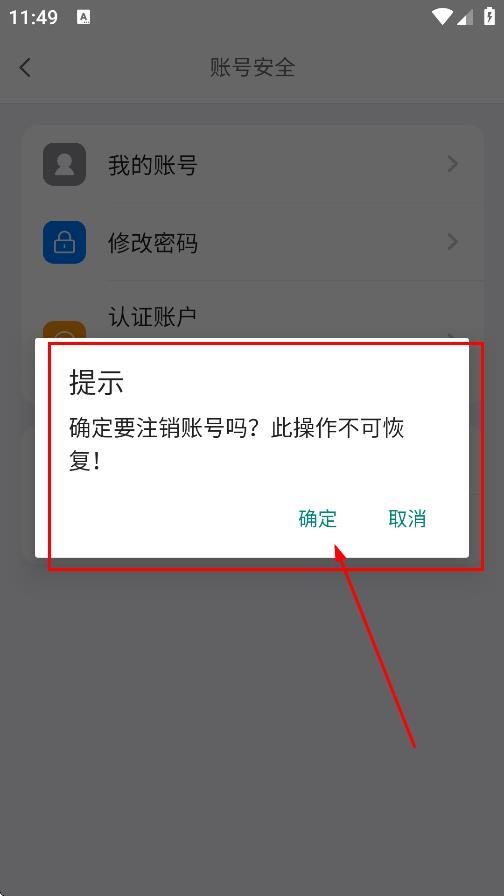 4、在提示弹窗中,点击确定,即可注销账号。