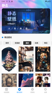 2、进入首页后,这里为大家准备了动态与静态两种类型的壁纸,涵盖了动漫、风景、建筑等多种风格。