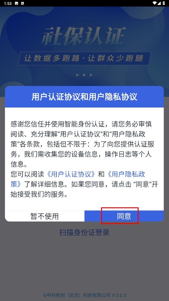 2、仔细阅读用户认证协议与隐私协议的内容后,点击页面上的【同意】按钮。
