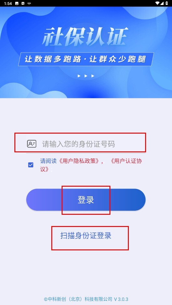 3、输入身份证号码后点击【登录-按钮】,或选择【扫描身份证登录-选项】。
