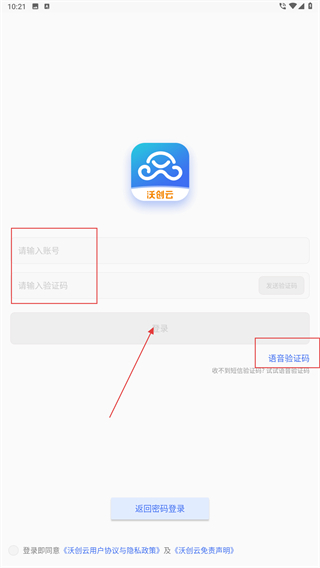3、若选择短信验证登录,需先填写【请输入账号】栏目的内容,随后点击【发送验证码】按钮来获取短信验证码;此外,也可以点击【语音验证码】按钮,以语音形式获取验证信息。