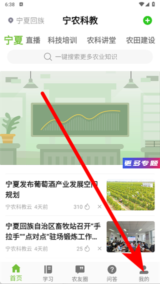 1、打开宁农科教,点击页面底部的我的。