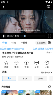 5、用户找到心仪的影片后,即可开始观看,还能选择集数、切换播放源以及查看弹幕等。