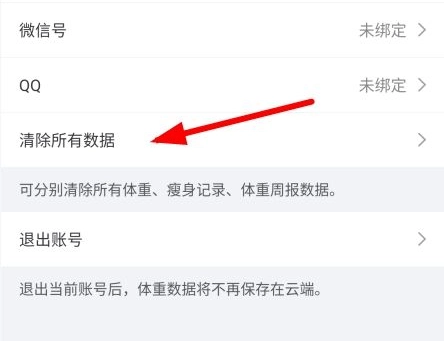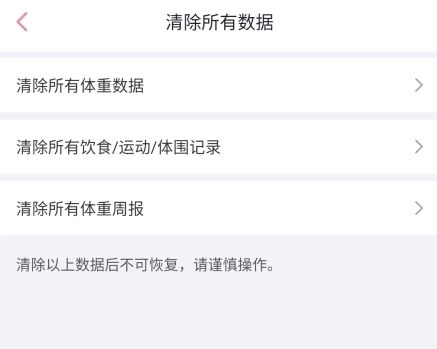 3、在此处可清除所有体重数据、饮食/运动记录、体围记录以及所有体重周报。