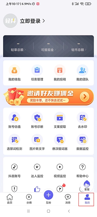 5、下方有分佣专栏,用户可以做任务赚佣金;