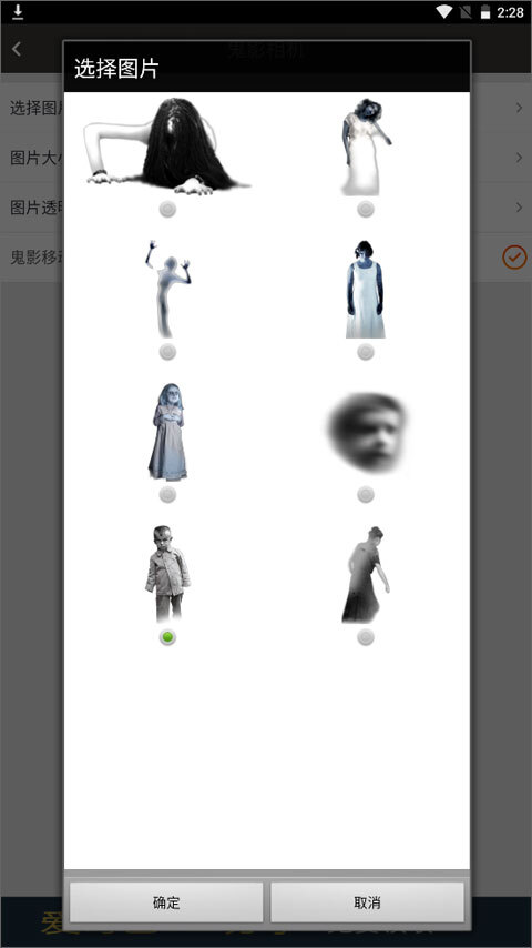 当你打开相机功能后,相机画面里会出现一个鬼影,你也能随机挑选自己心仪的鬼影图片,之后再进行拍摄。