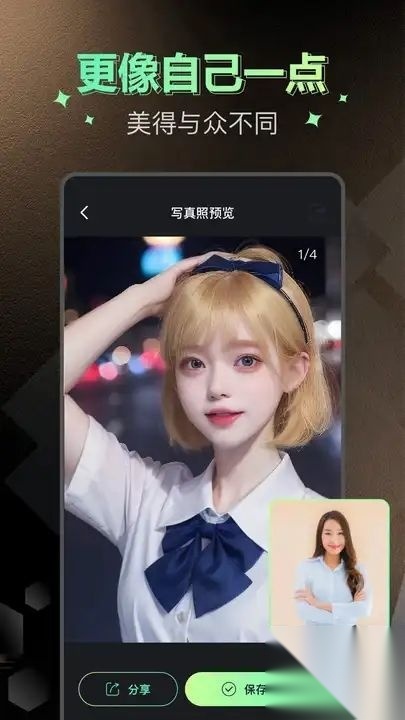 2、AI写真服务可提供个性化定制的精美照片,每一张都能给人带来耳目一新的感觉;